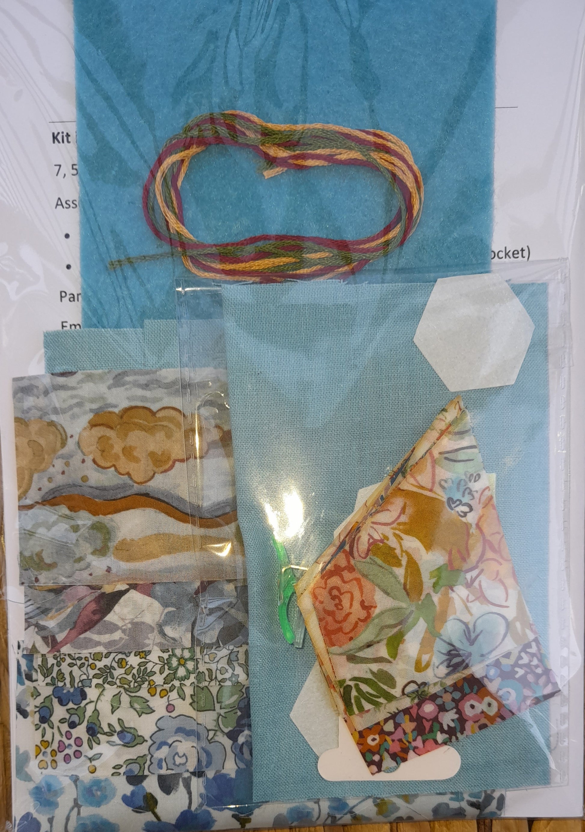 Whether you are joining one of our live classes or watching this class online, this is the kit for making an English Paper Pieced needlebook using fusible hexagons and combined with beautiful Liberty Tana Lawn fabric and either blue or white/natural linen.