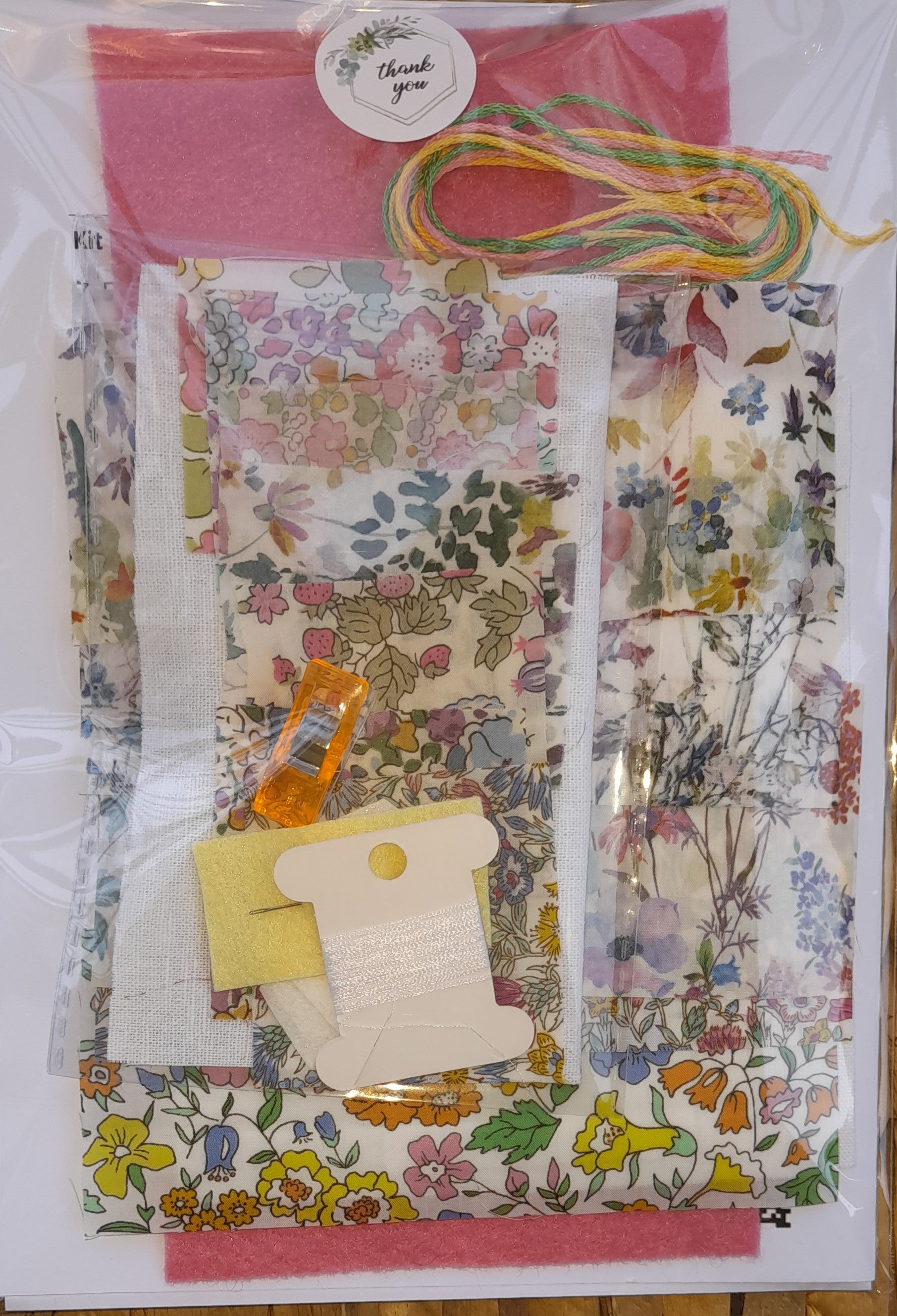Kits include fabric, paper pieces, felt needle and threads, to make 1 needlebook.