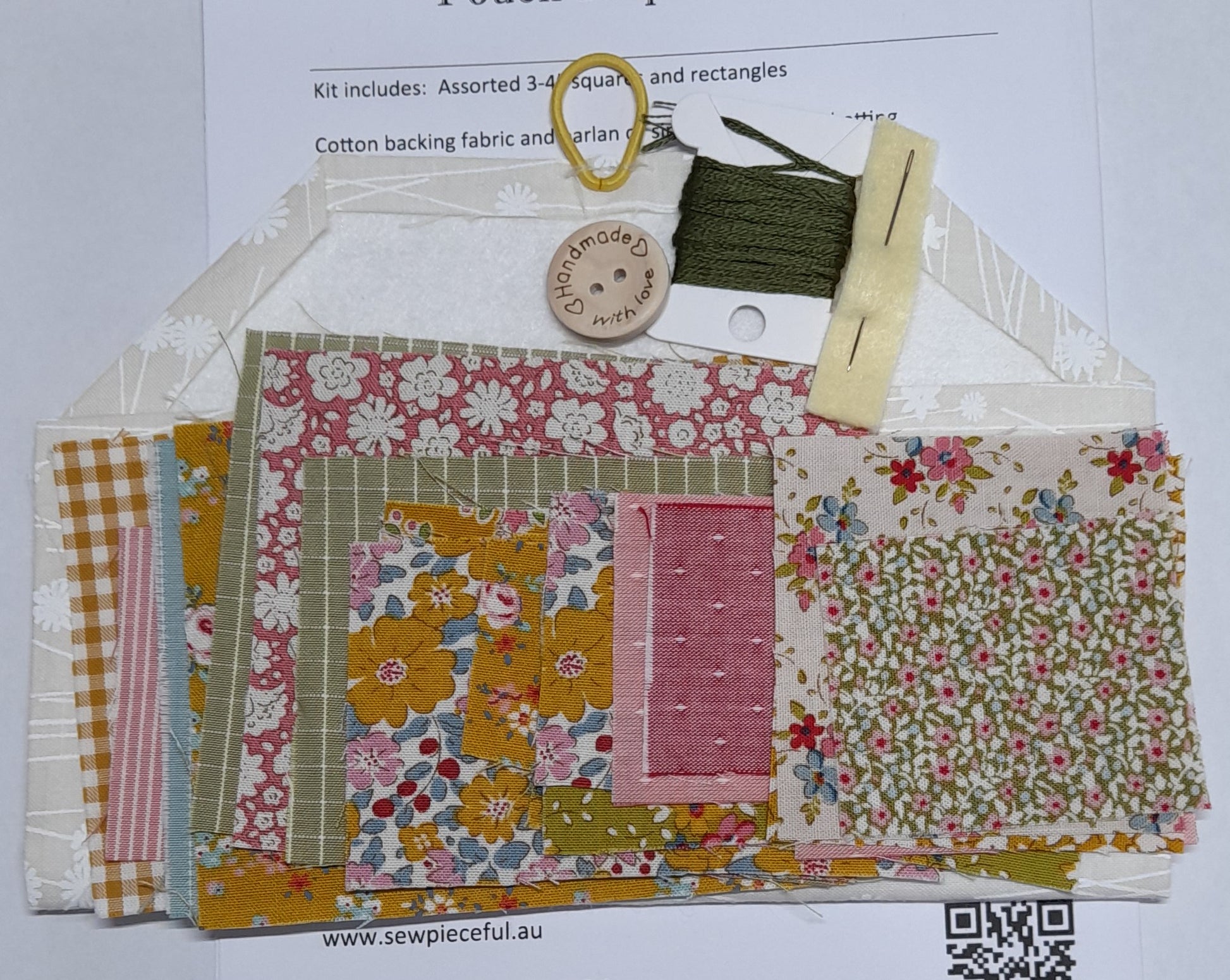 Whether you are joining one of our live classes or watching this class online, this is the kit for making a pouch using the Kawandi style of patchwork.